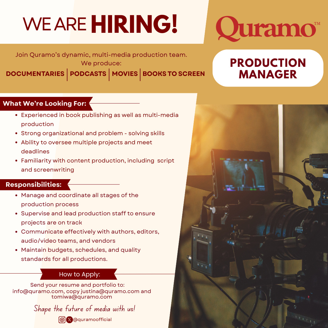 Behind the scenes, where ideas are shaped into documentaries, podcasts, films, and books brought to screen, Quramo seeks a steady hand. A Production Manager—organized, creative, and unafraid of juggling many moving parts is required to guide projects from conception to completion. It is a role for those who understand that great stories deserve great structure.